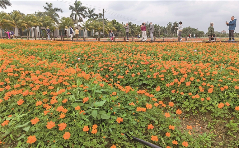 游人在海南琼海大路坡村花海赏花。新华社发